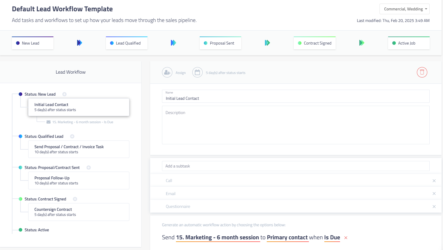 - Schedule emails and tasks at set intervals — like sending a contract one day after booking, and a prep guide a week before the shoot